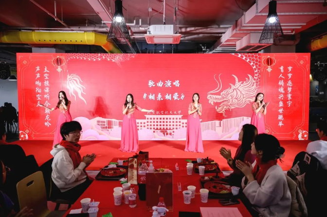“春节是万家团圆的日子”,王云鹏表示,春节期间有同学因科研、实践任务或路途遥远不能回家与亲人团聚,也有部分后勤安保等一线职工舍小家为大家,依然坚守在工作岗位上,希望这样一场喜庆祥和的新春团圆宴,让大家充分感受到北航大家庭的温暖,“我们永远在一起,永远是一家人!”